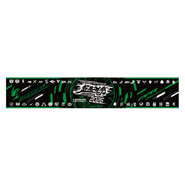 ライブでの盛り上がりに必須な、歴代ライダーデザインのマフラータオルです。